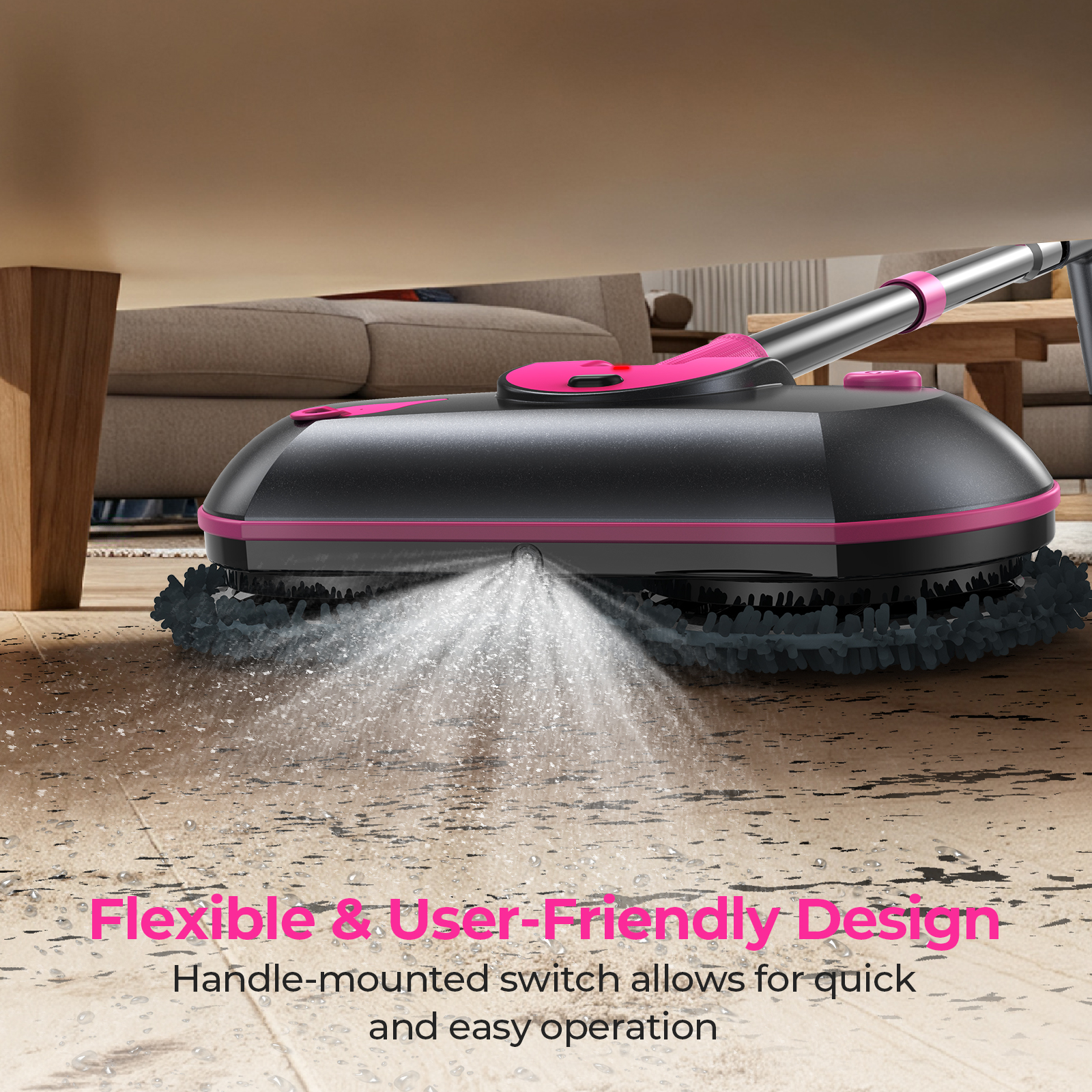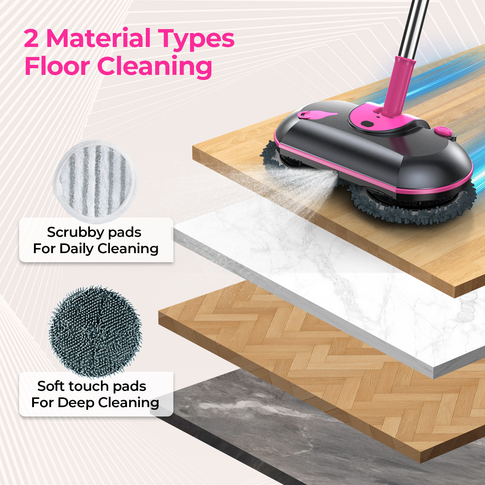 Safe for All Floor Types: ScrubWiz electric dual spinning mop is designed for hardwood, tile, laminate, and vinyl; The gentle yet effective rotation protects your floors while delivering a sparkling finish—one tool for every room in your home